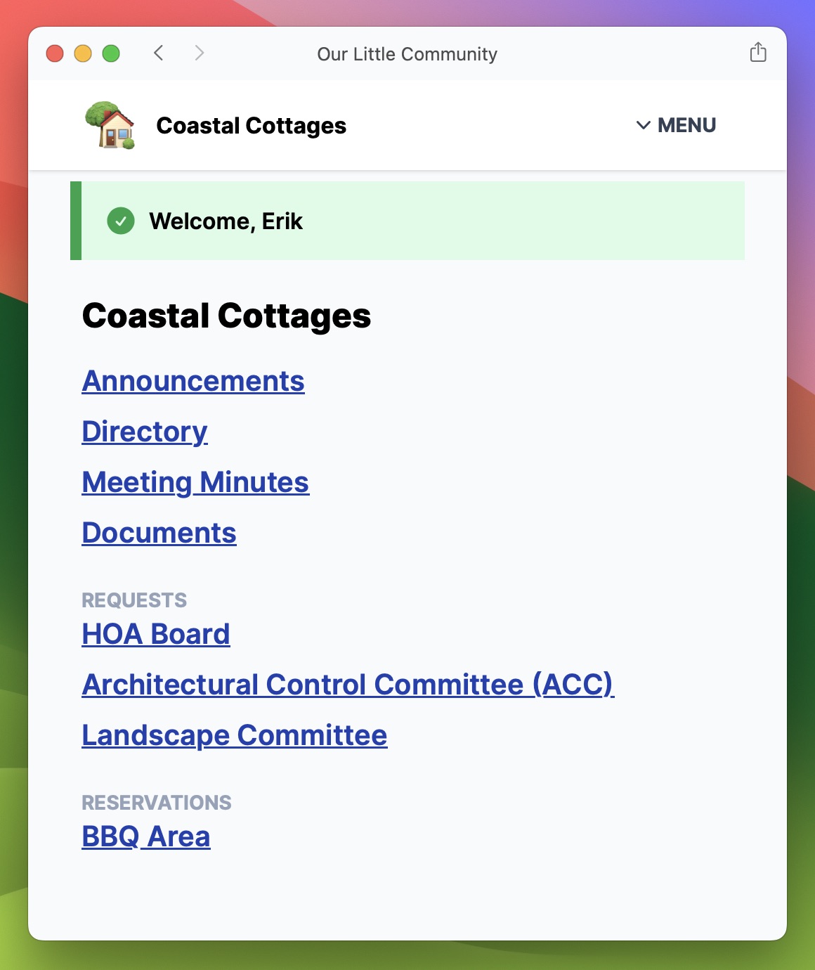 Our Little Community exists to help you manage your small HOA. Its design is deliberately simple but deceptively powerful. I built Our Little Community to be the nexus for all things related to my 32-home HOA. And it's what I would have wanted at my previous 12-unit condo. Perhaps it can work for your HOA, too.
